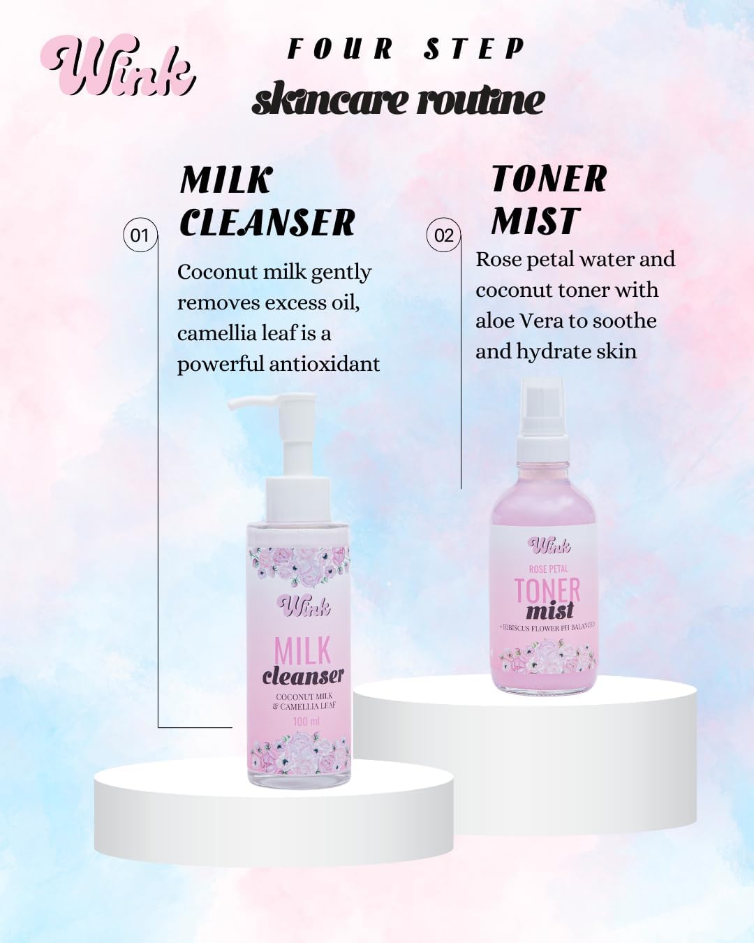 With Wink’s Full sized glass bottles, skincare time feels like a luxury.