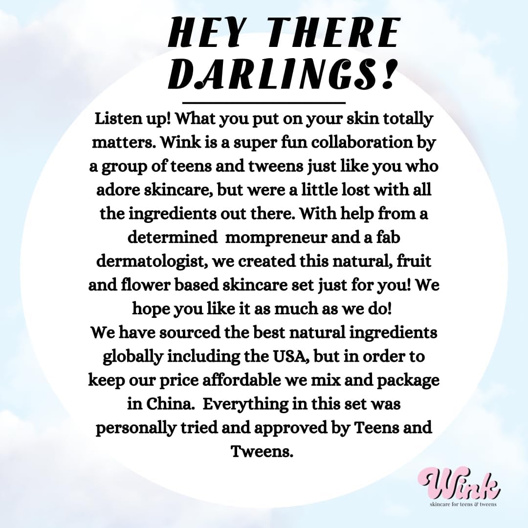 We understand that the teen and tween years can be especially challenging when it comes to skin issues. That’s why developing a consistent skincare routine is essential—Wink four step skincare set makes it easy and fun!