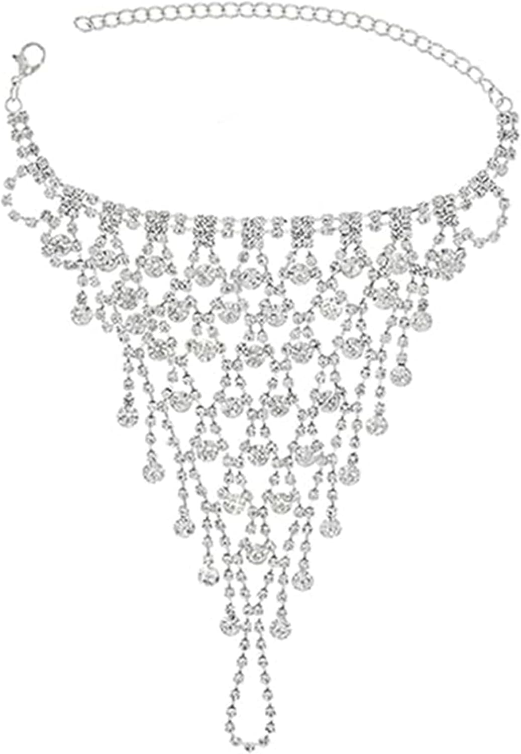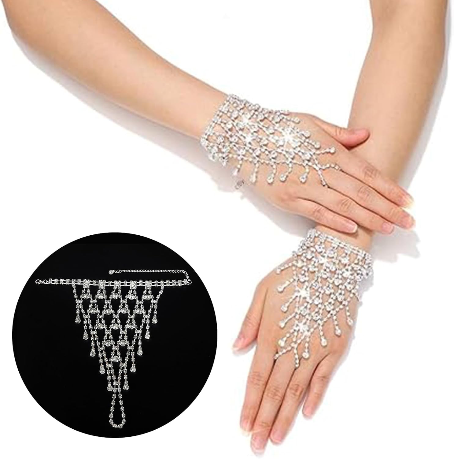 Wisfunlly Rhinestone Bracelet Ring Silver Hand Chain Crystal Bangle Finger Ring Bracelets Fingerless Gloves, Sparkly Adjustable With Tassels Accessories for Women