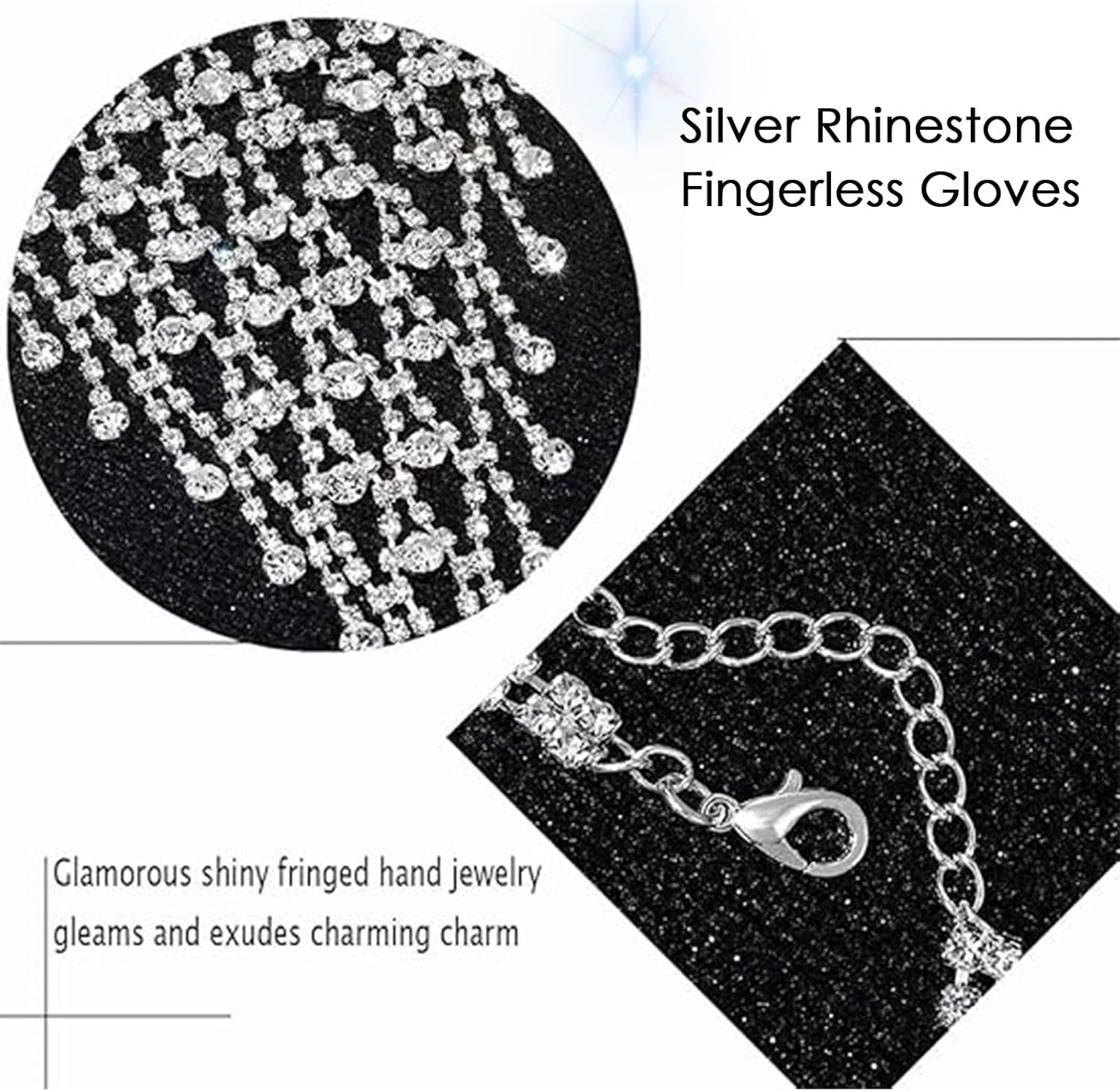 1. Add a touch of glamor and style to your outfit with these silver rhinestone fingerless gloves and sparkling bracelet.