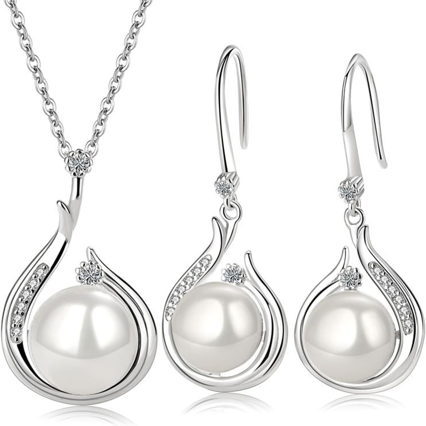 Women Fashion Ladies Pearl Jewelry Set, Dainty Pearls Pendant Necklace Earrings Set Valentines Mothers Day Birthday Christmas Jewellery Gift for Her Girlfriend Wife Mom