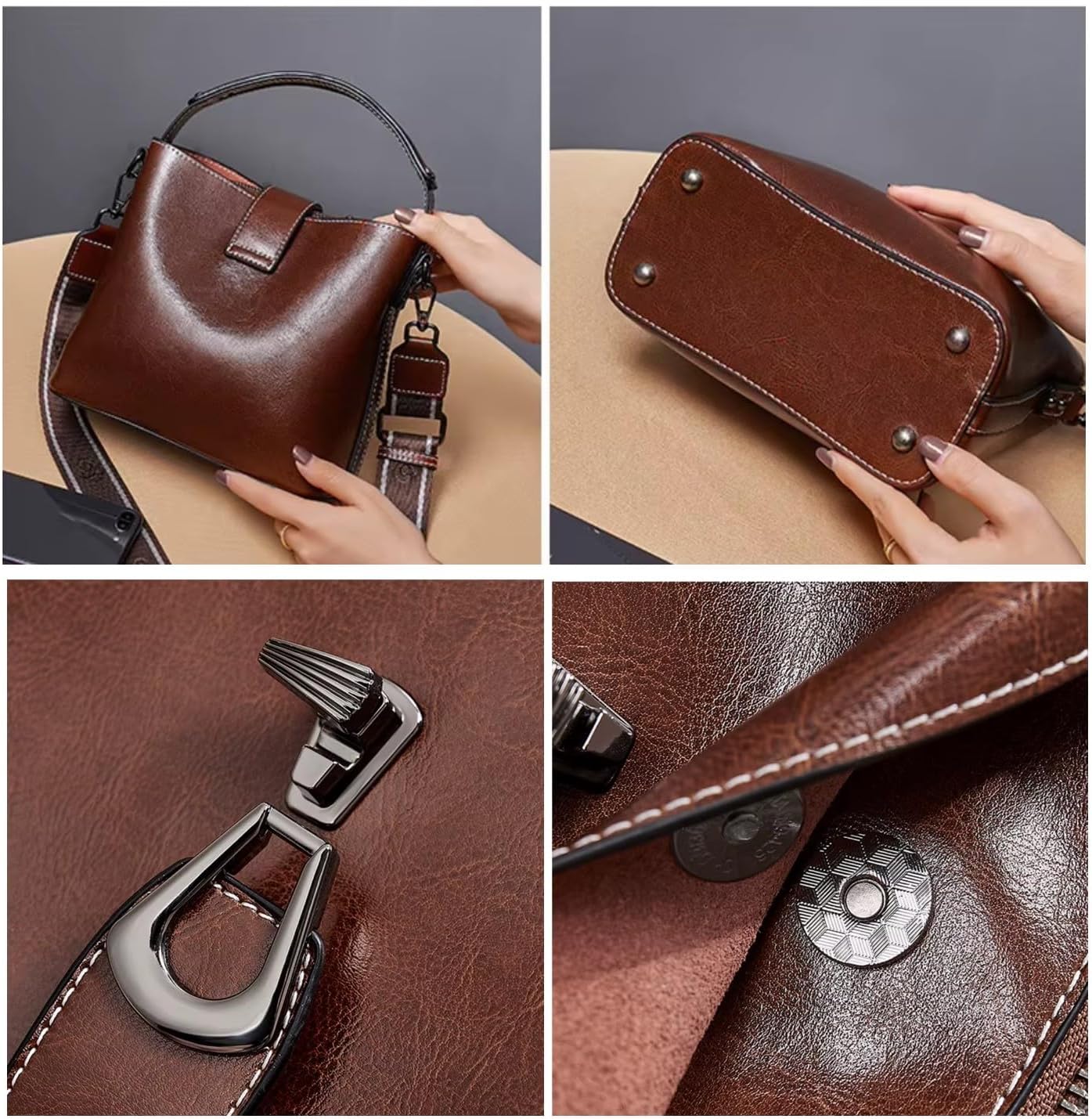 Aurexa offers genuine leather crossbody handbag for women. Small to medium sizing. It is made of top grain oily waxed cow leather. High quality and durable! This bag is fashionable and light weight. It can hold all your essentials such as phone, wallet, lipstick and many more. It is must-have bag for most women or young girl to show classy fashion with practical high capacity.