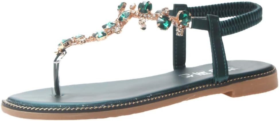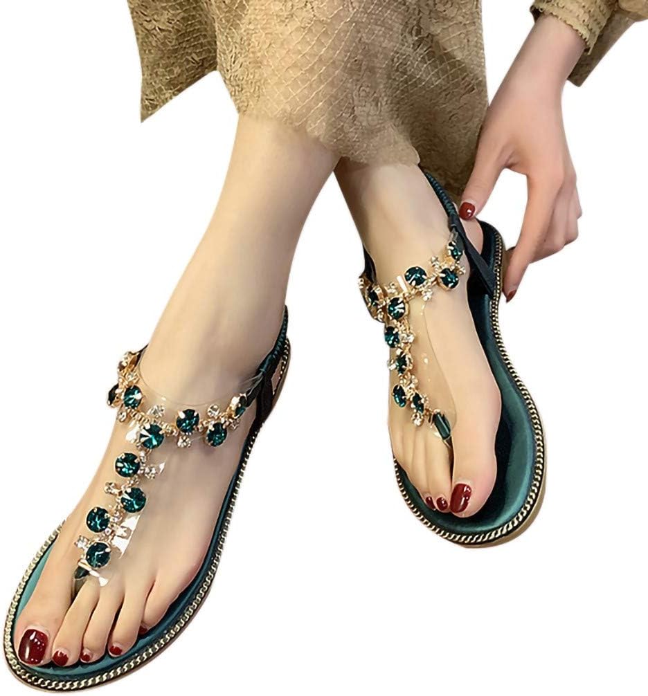 Women Open Toe Flat Platform Sandals ❀ Ladies Thong Sandals T-Type Rhinestone Flat Bottom Roman Sandals Shoes