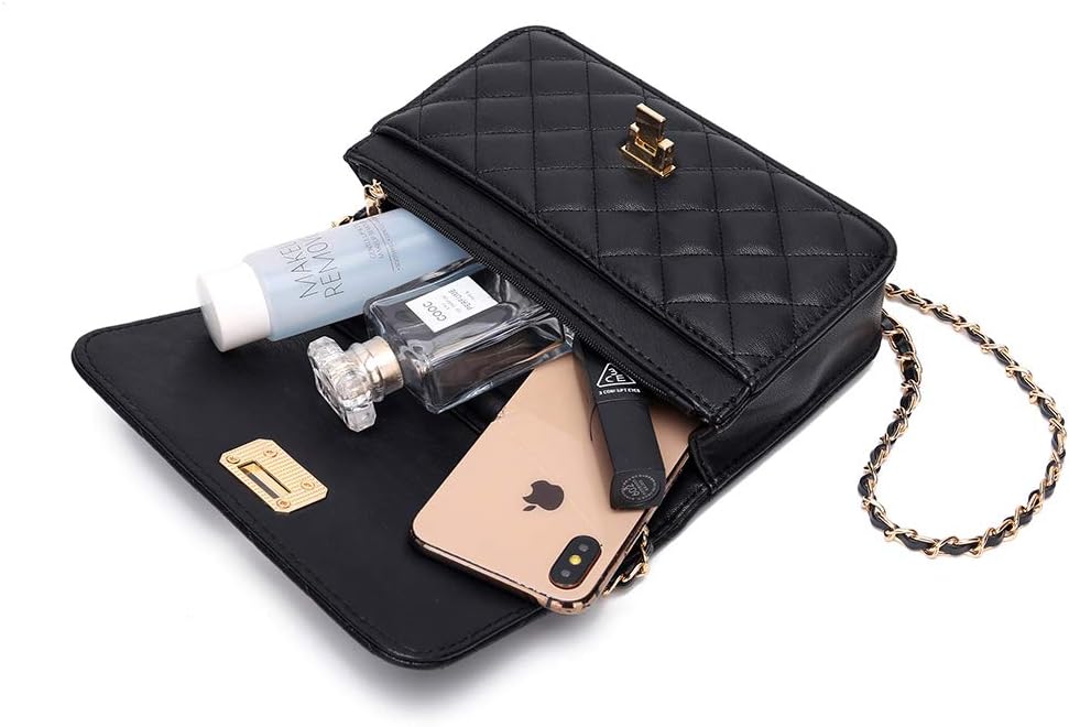 Women Shoulder Bag Grid Crossbody Handbag Daily Leather Stylish Evening Chain Bag