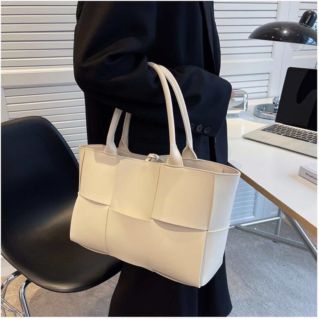 Women Woven Tote Small Crossbody Bag, Weave Handbag Shoulder Bag Built-in Zipper Pursewith Detachable Strap