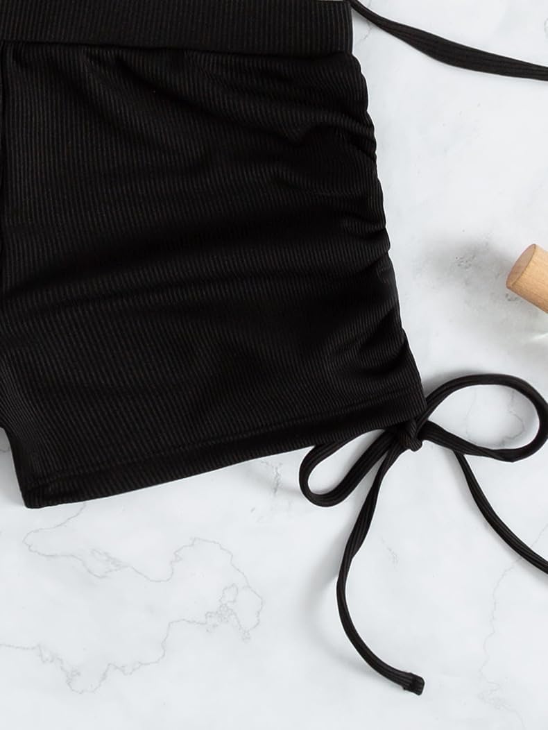 Women’s 2 Piece Bathing Suit Drawstring Side Swim Shorts Bikini Swimsuit