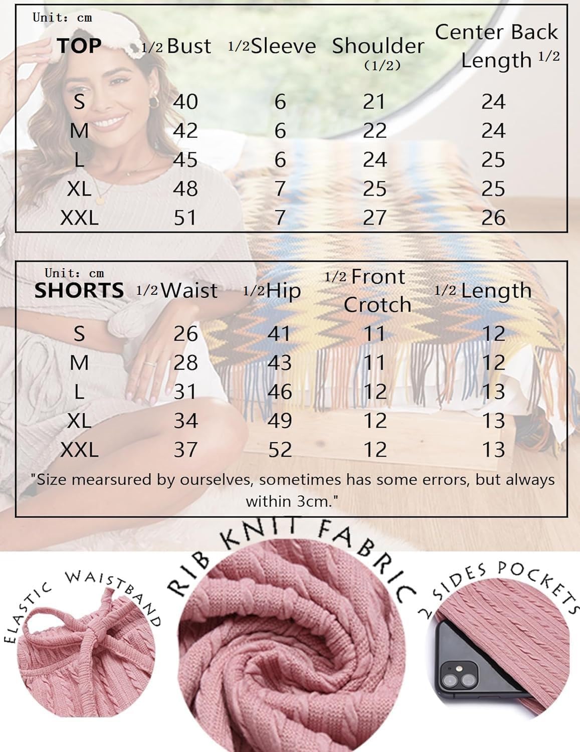 Women’s 2 Piece Lounge Sets Ribbed Knit Matching Outfits T-shirt and Shorts Sets Sleepwear Loungewear Casual Pajamas
