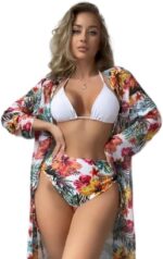 Add a splash of elegance to your beach or pool look with this Women’s 3 Piece Swimsuit Floral Print Halter Bikini Set, complete with a stylish cover-up.