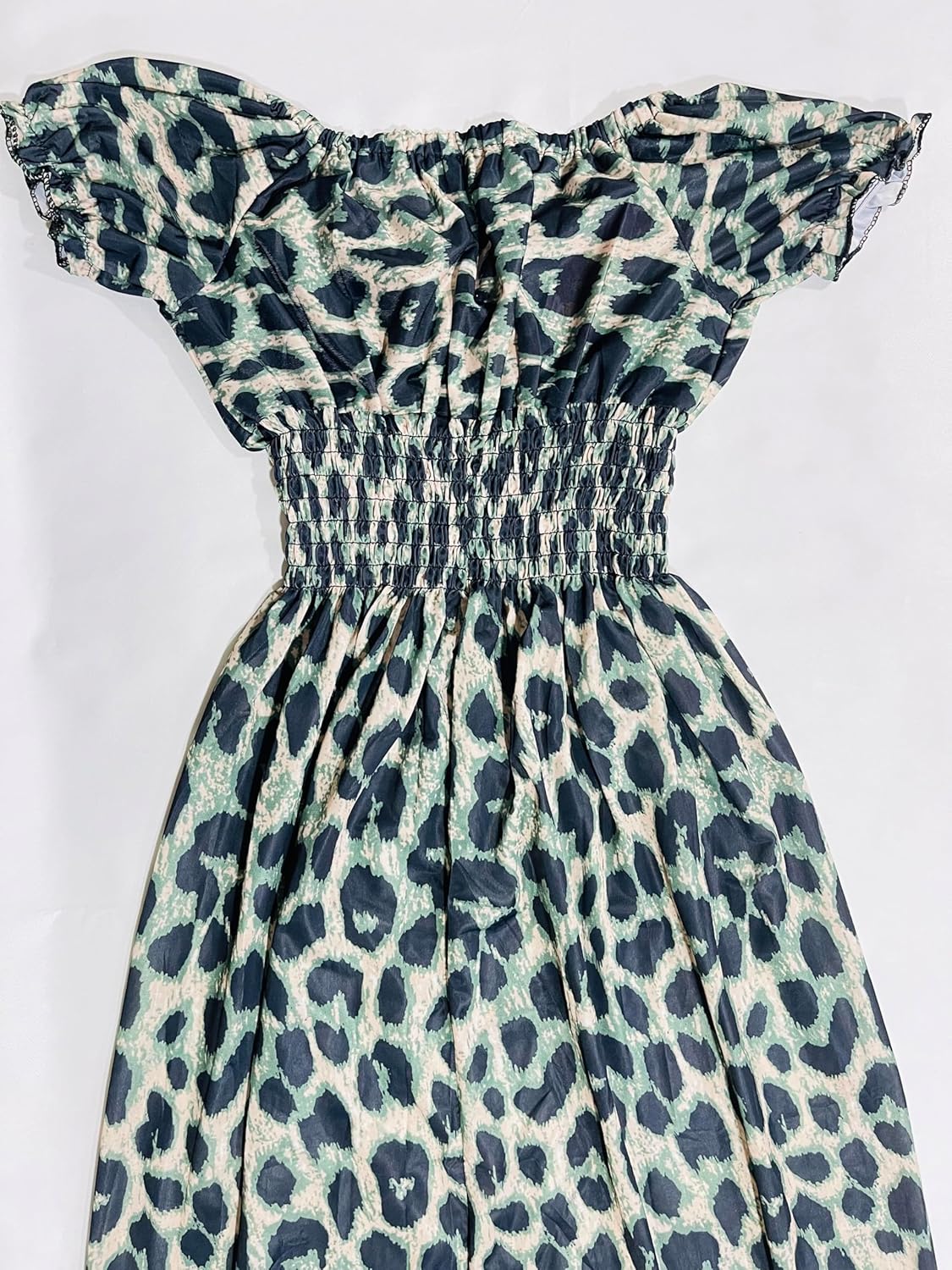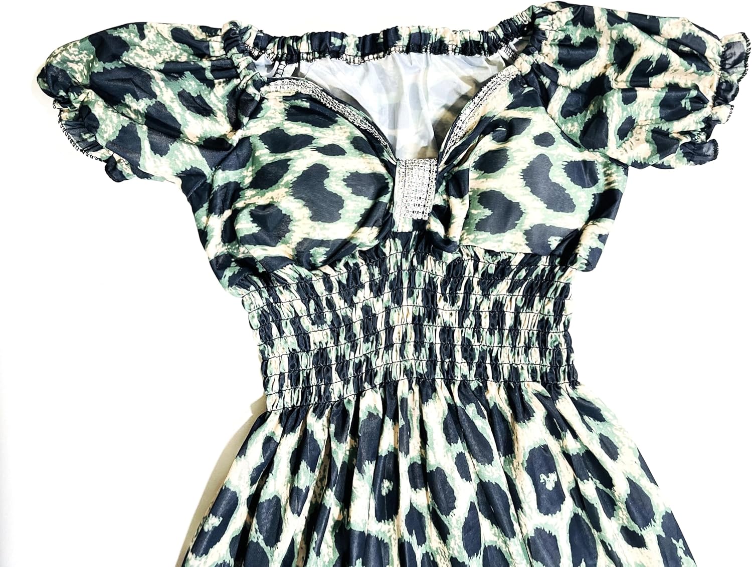 This leopard printed beautiful Women’s Maxi Dress is available in two different colours Green & Brown. It can be worn in both formal and casual events. It is very comfortable and regular fit dress along your body and is ideal for all seasons and occasions. This Crepe fabric is adjustable according to the individual’s size, hence perfect fit for a broader range of sizes.