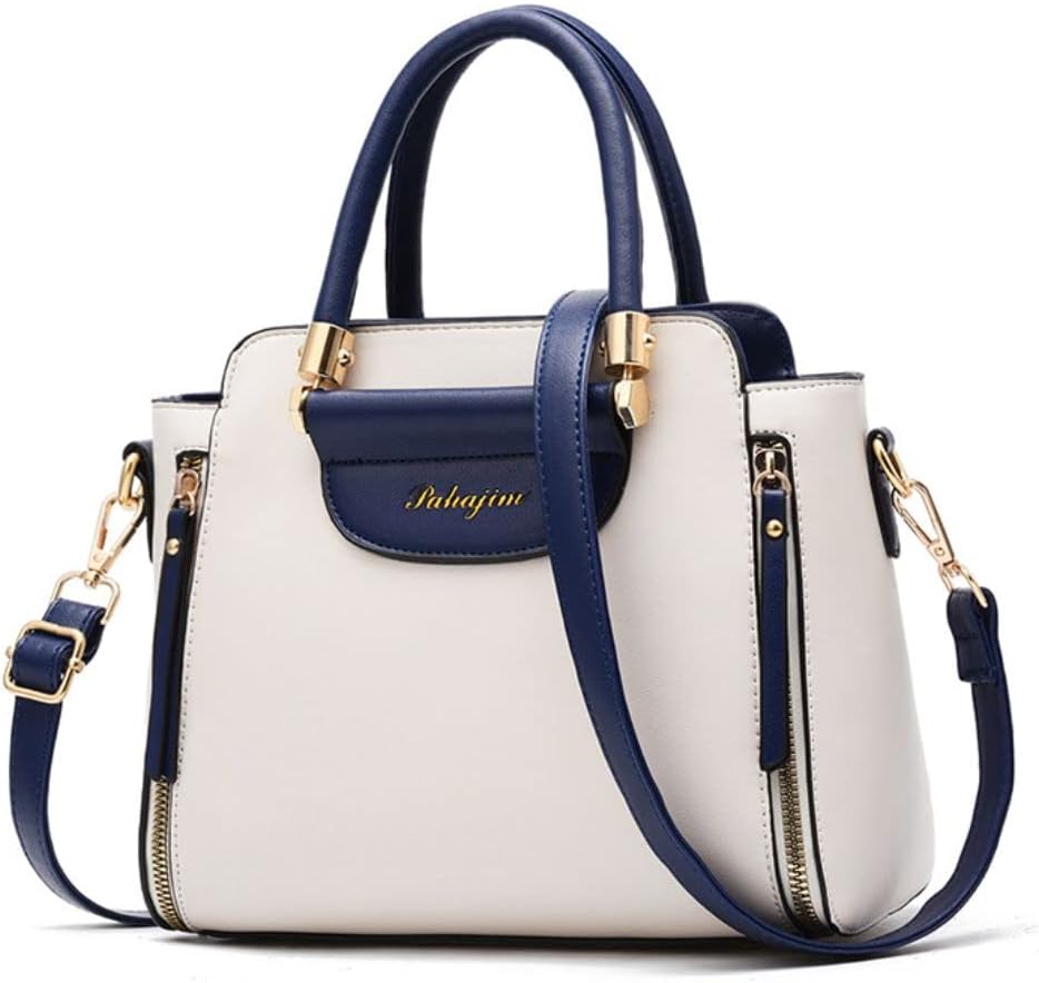 Women’s Purse | Classy Leather Tote Handbag | Top Handle Satchel | Daily Work Shoulder Bag | High Capacity | Multiple Pockets | Appealing Colors | Laptop Briefcase for Women (WhiteBlue)