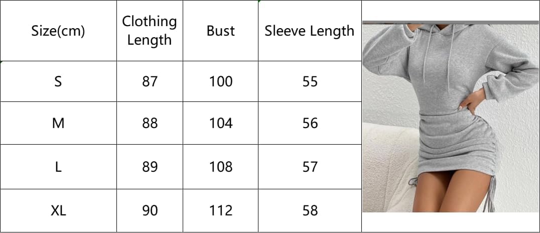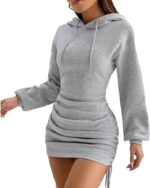 Women’s Ruched Side Drawstring Hoodie Dress Drop Shoulder Solid Sweatshirt