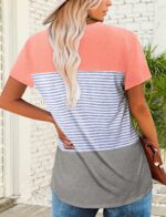 Womens Short Sleeve Tops Dressy Casual Summer Blouses Loose Fit Color Block Tunic Tops Casual Ladies Striped Shirts
