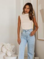 Elevate your summer wardrobe with this Women’s High Collar Pleated Sleeveless Top!