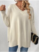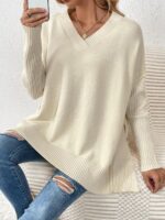 Be the first to review “Women’s V Neck Sweaters Long Batwing Sleeve Split Hem Pullover Asymmetric Loose Casual Knit Tops”