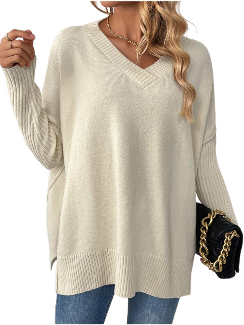 Be the first to review “Women’s V Neck Sweaters Long Batwing Sleeve Split Hem Pullover Asymmetric Loose Casual Knit Tops”
