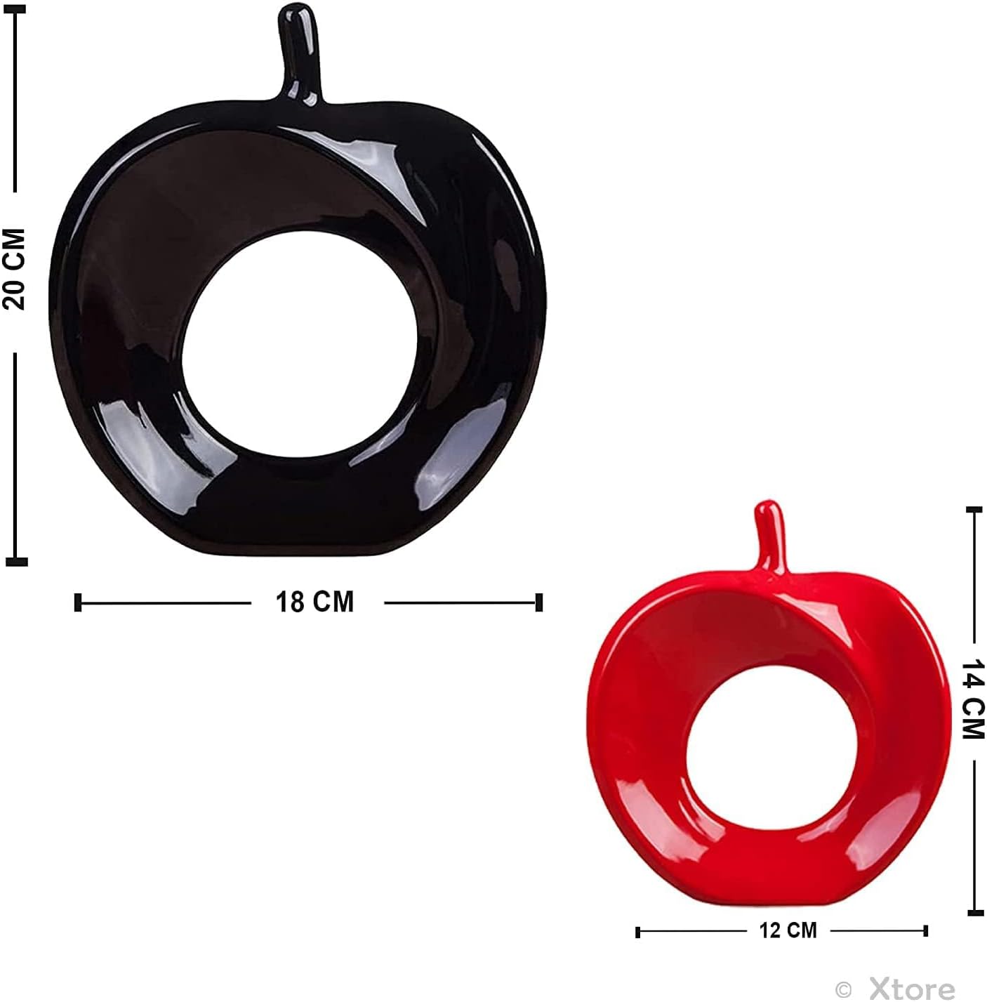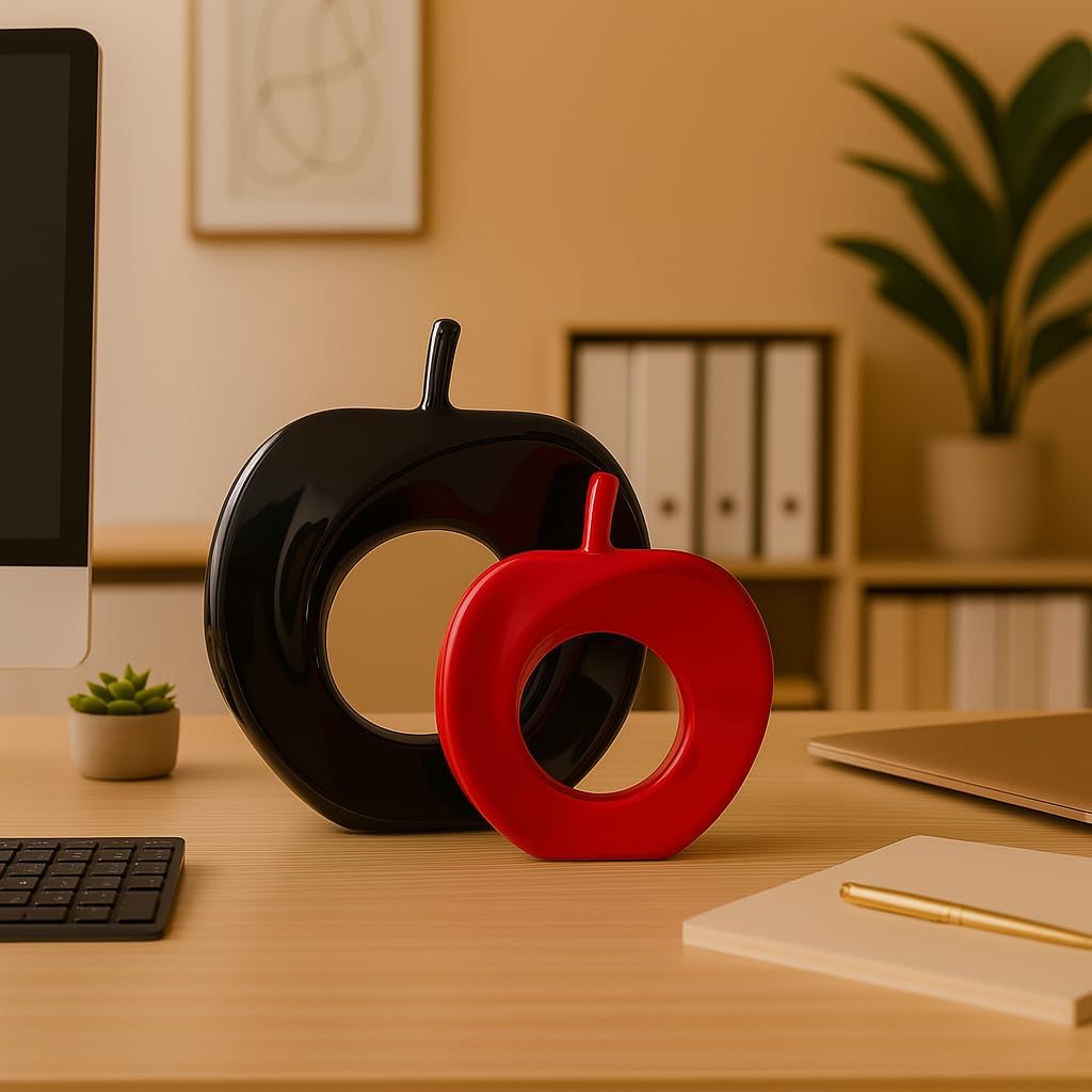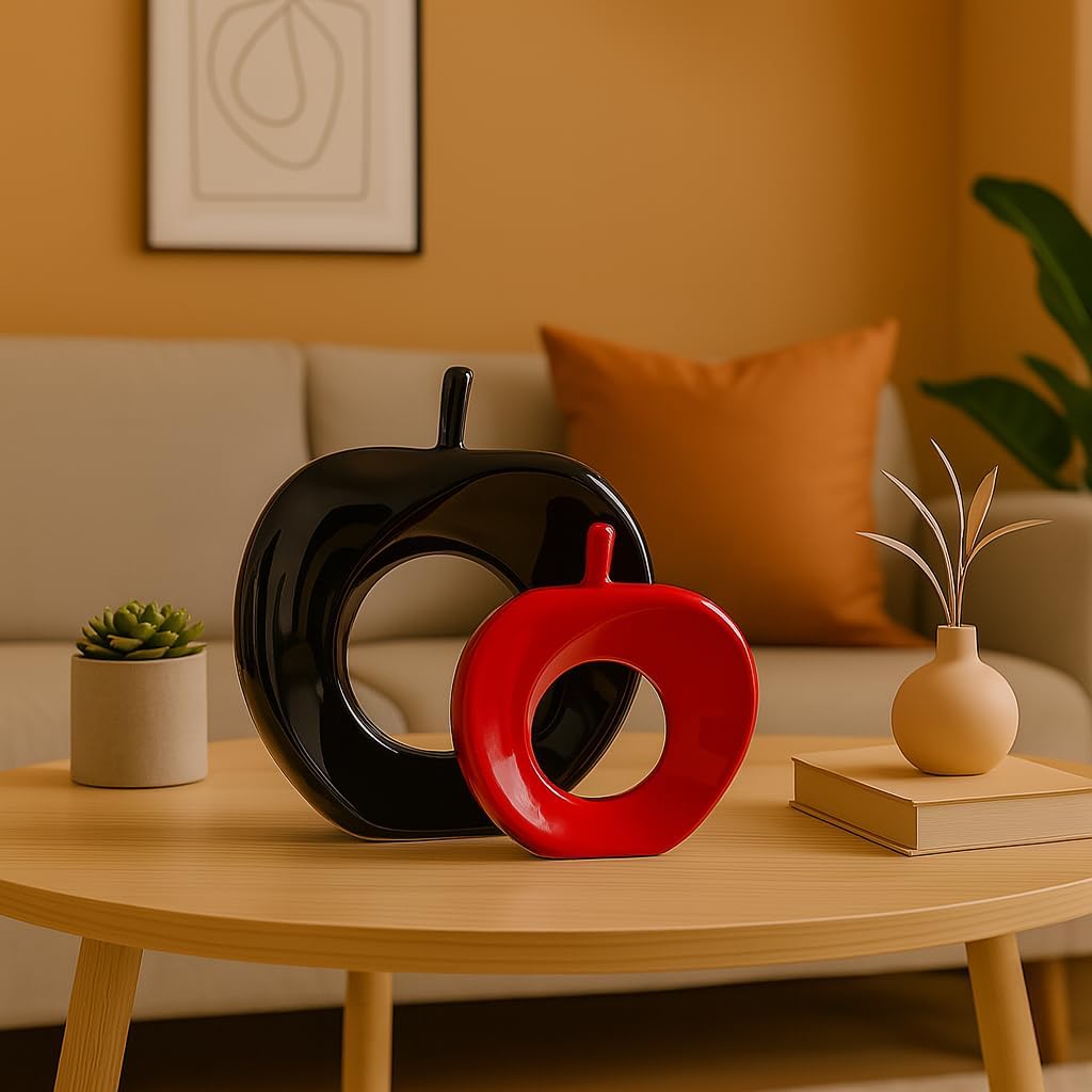 Xtore Beautiful Apple Shape Ceramic Home Decor Showpiece (Pack of 2, Black & Red Color)