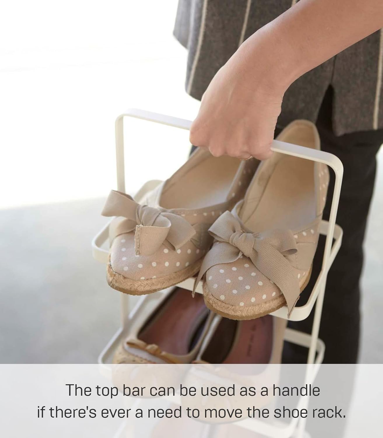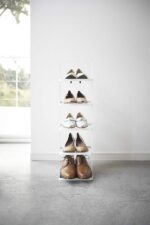This simply designed shoe rack by Yamazaki s stackable to ensure maximum Capacity. Each rack is beautifully designed to hold 5 pairs of shoes.