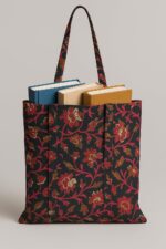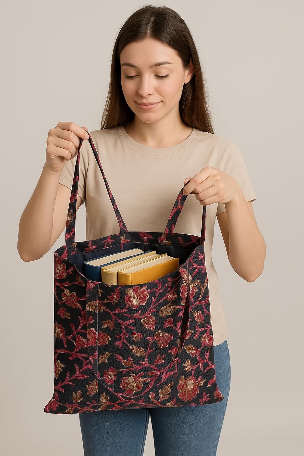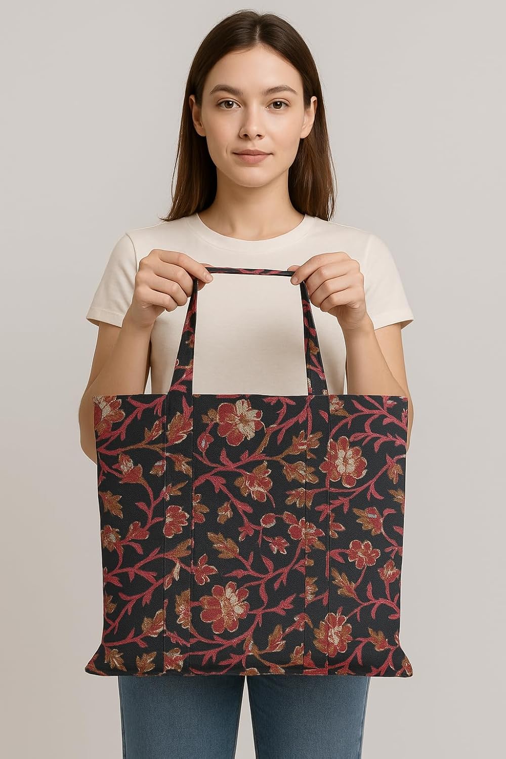 Yash Gallery Women’s Cotton Floral Printed Black Tote Bags, Lightweight Medium Reusable Grocery Shopping Cloth Bags, Carry Bag, Travel Bags, Promotion, Gift, Market Handbag