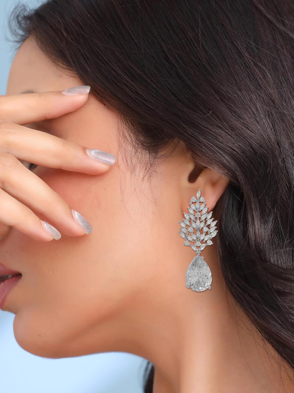 Yellow Chimes A5 Grade Crystal White Diamond Classic Designer Crystal Earrings For Women And Girls