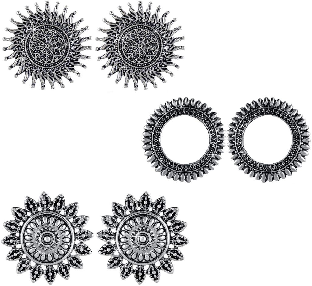Yellow Chimes Antique Boho Combo 3 Pairs Stud Earrings Indian Traditional Ethnic Fashion Jewelry