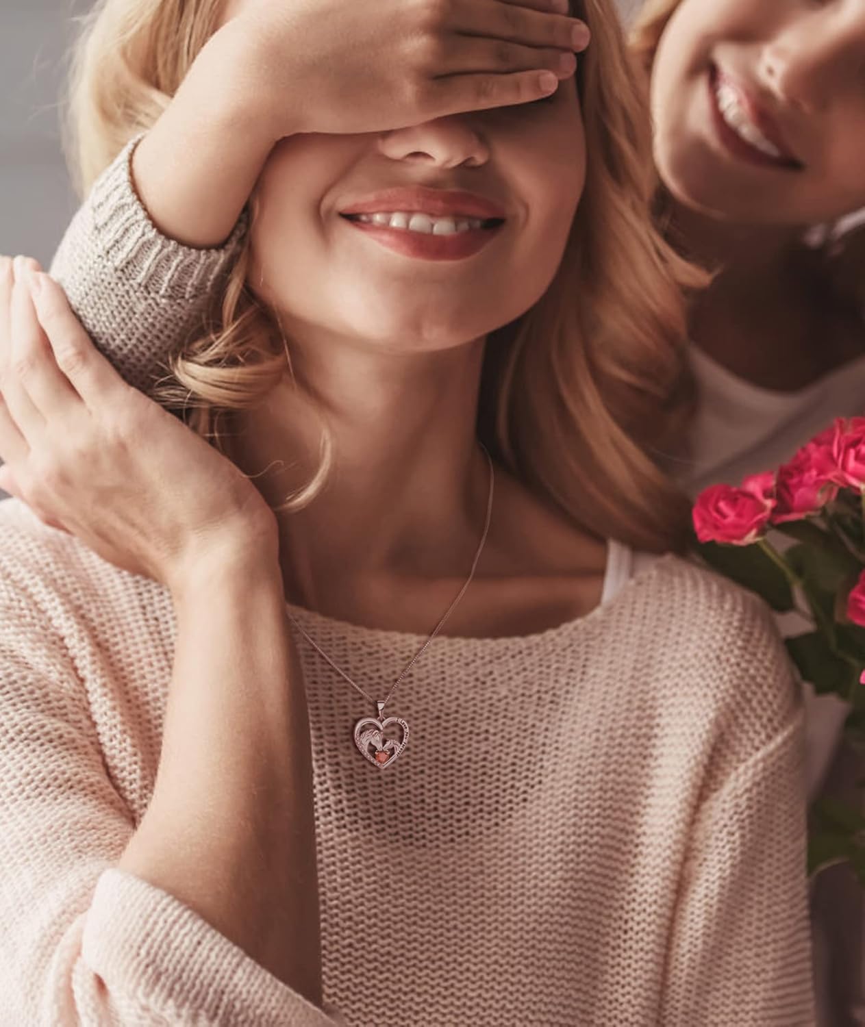 YL Horse Necklace for Women 925 Sterling Silver Heart Pendant 18k White Gold Plated Animal Jewelry