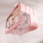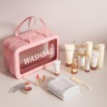 Ymlike Large Capacity Portable Travel Cosmetic Bag, 2 Layer Visible Wet Dry Separated Toiletry Bag with Handles, Clear Handbag Organizer Makeup Case Storage Pouch for Women and Girls (Pink)