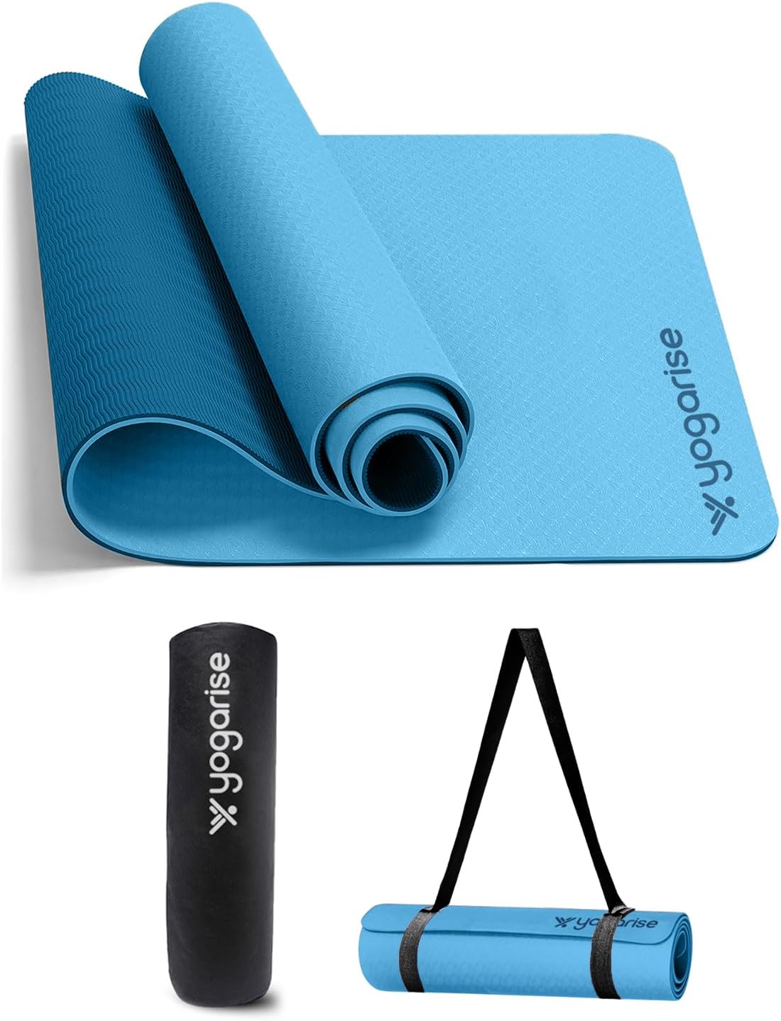 Yogarise 6mm Dual Yoga Mat with Bag & Strap, Yoga Mat for Women & Men, Premium TPE Material Extra Thick Exercise Yoga Mat for Workout, Yoga, Fitness, Anti Slip Mat (Light & Dark Blue)