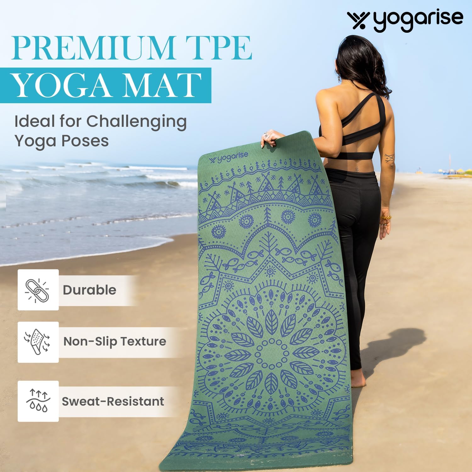 Yogarise Perfumed TPE Yoga Mat with Mandala Print and Carry Bag for Men and Women, Non-Slip Texture, Extra Wide & Thick TPE Exercise Mat For Home, Pilates, Gym & Fitness, Durable, Sweat-Resistant