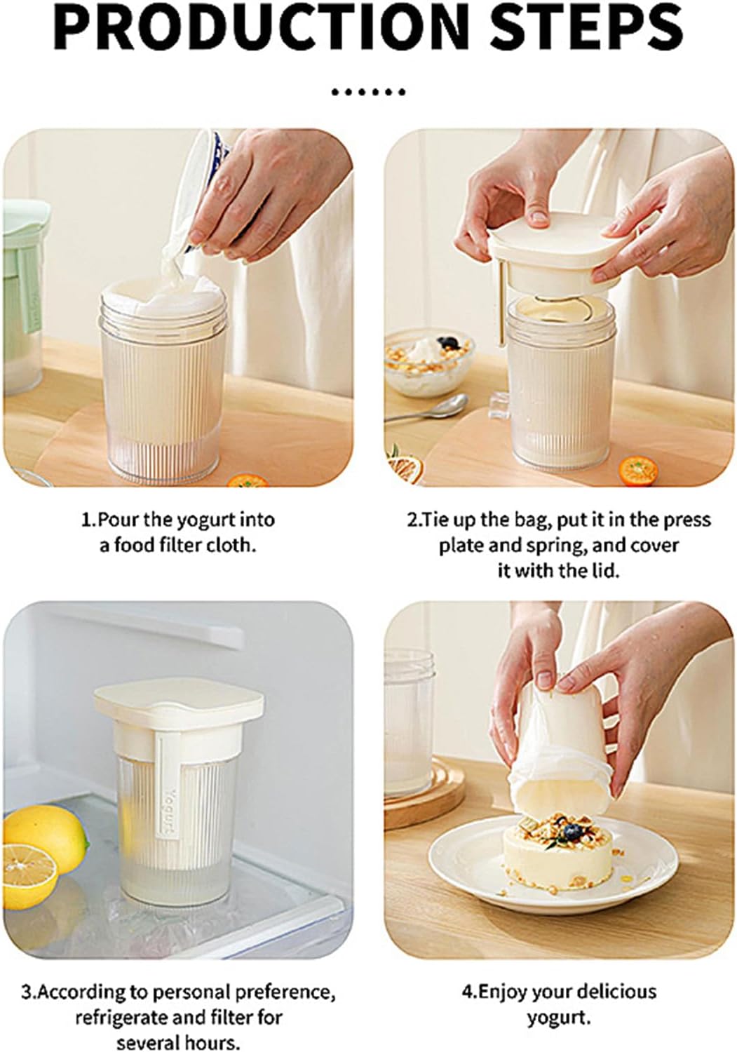 Effortless Yogurt Making: Featuring a no-step-complex design, this strainer automatically drains whey after loading, cutting costs on consumables and offering reusable filters that are easy to clean and operate for yogurt making