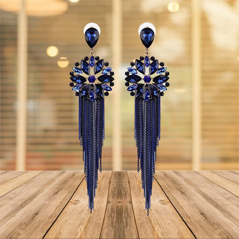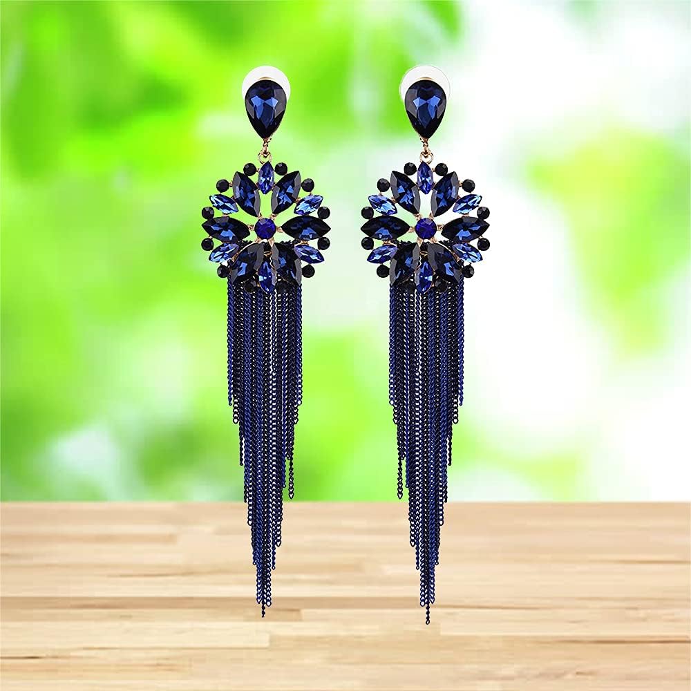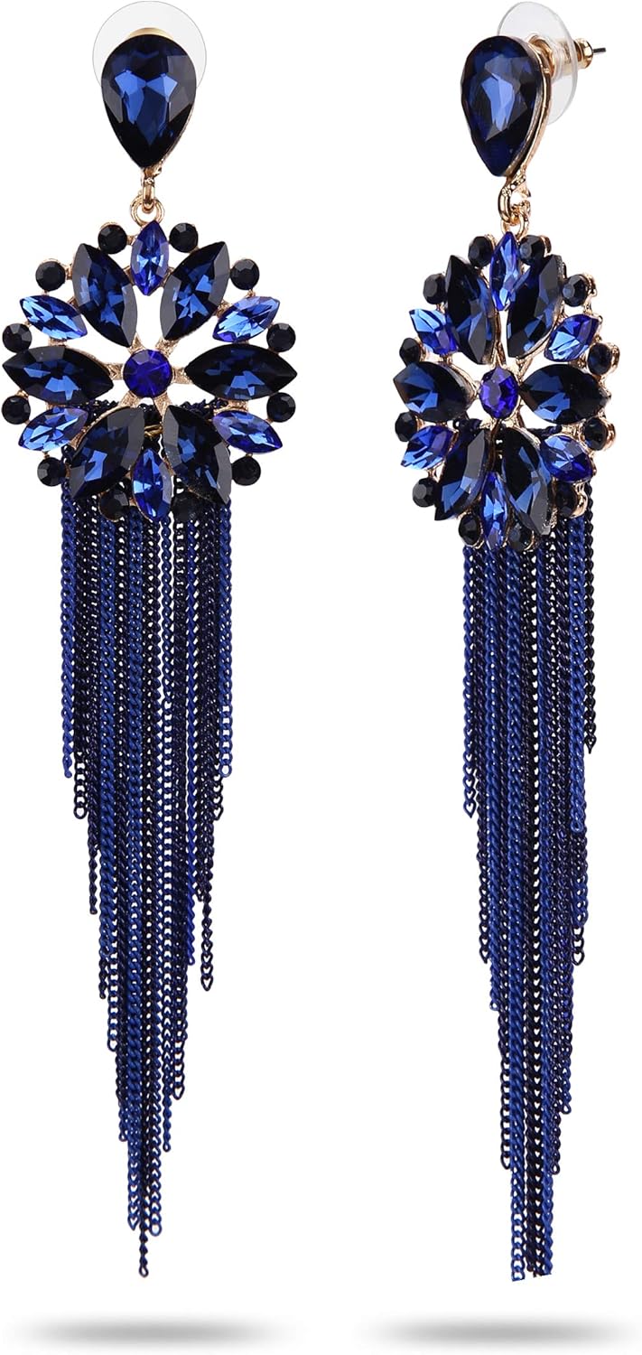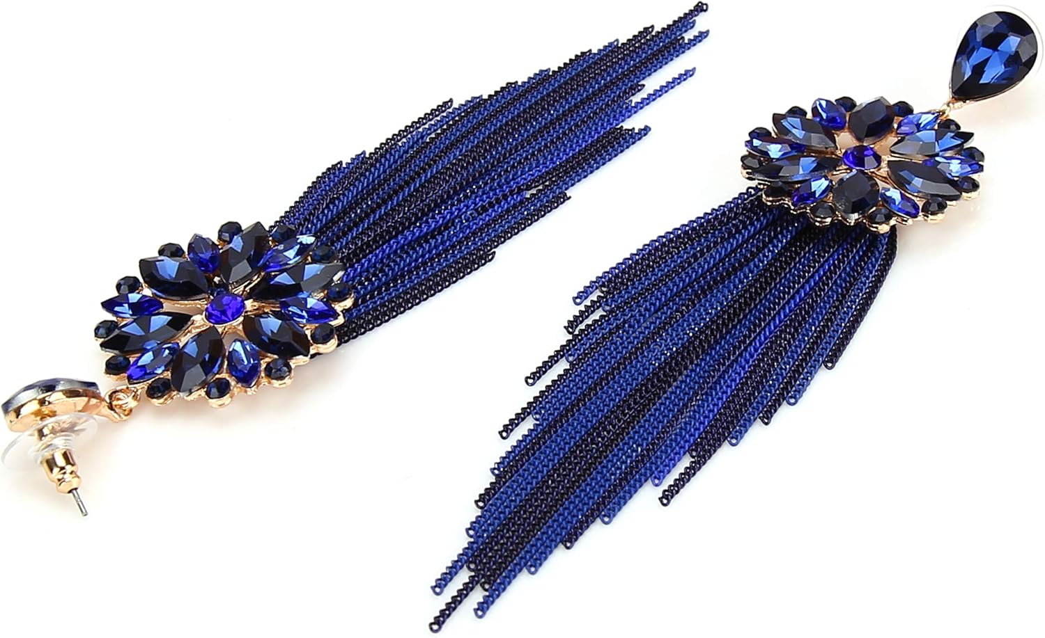 YouBella Jewellery Crystal Tassel Gold Plated Handmade Earrings for Women (Blue), One Size