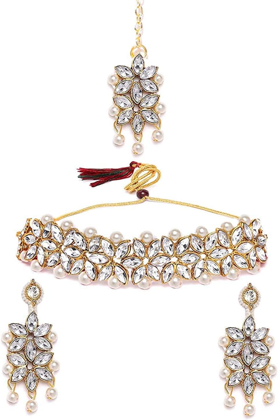 YouBella Stylish Latest Traditional Jewellery Pearl Jewellery Set for Women (White)(YBNK_5524)