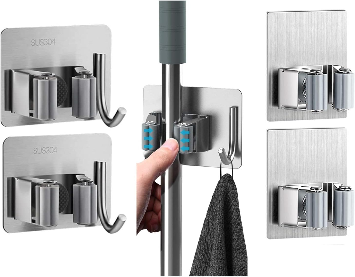🏠User-Friendly & Removable: Enjoy a quick, residue-free setup with our mop holder no drill design. The dual adhesive system ensures effortless repositioning, providing a reliable broom holder adhesive and seamless mop holder wall mount on any smooth surface.