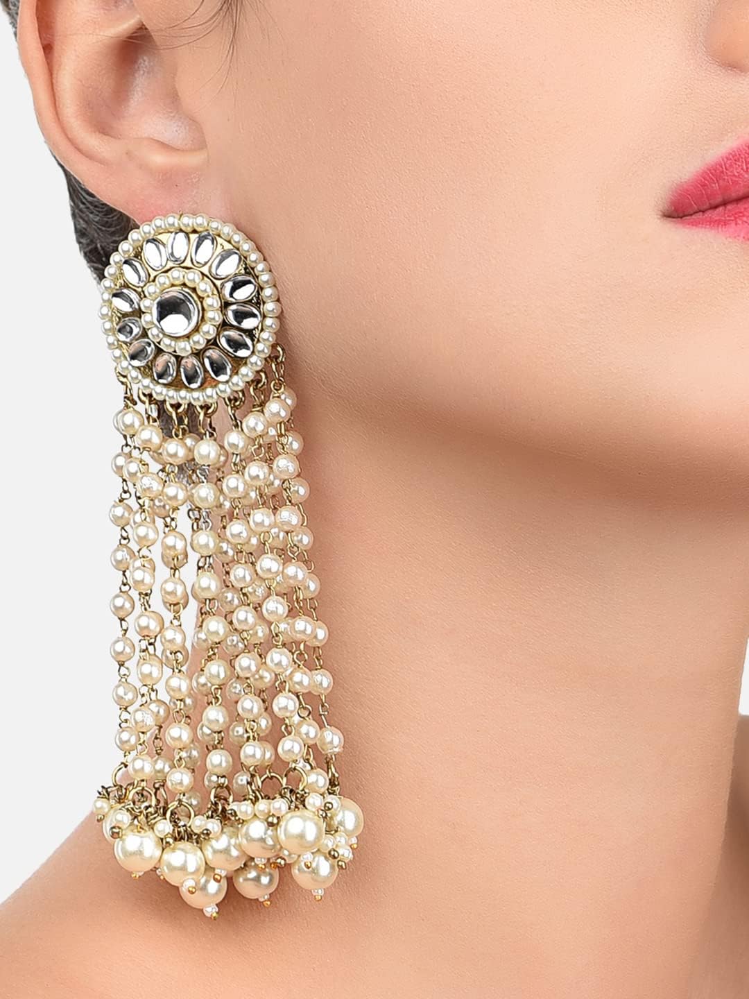 Earrings Are A Great Way To Spice Up Any Outfit. Going To Work? Wear Hoops Or Studs. On A Date? Go For Something Delicate And Feminine Like Drop Earrings. Want To Stand Out At A Party, Go For Statement Earrings That Can Be Seen From Across The Room Like Tassels. Attending Weddings? Go For Danglers, Jhumkis,Chandbalis. For The Rest Of The Outfit, Keep It Simple. Zaveri Pearls Brings A Wide Range Of Earrings That Would Complete & Compliment Whichever Attire You Are Carrying, Such As Jhumki, Dangle & Drops, Chandbali, Studs, Hoops, Balis, Tassel, Chandelier, Hanging, Jhumpa, Ear Chain, Chain Link. We Also Bring An Exclusive Assortment Of Fashion Jewellery & Accessories Like Kundan Jewellery, Pearls Jewellery, Meenakari Or Enamel Jewellery, Temple Jewellery, Goddess Laxmi Jewellery, Lord Ganesh Jewellery, Radha Krishna Jewellery, Silver Or Oxidised Jewellery Used For Navratri, Peacock Inspired Jewellery, Floral Jewellery, Chunky Jewellery, Quirky Jewellery, Brass Jewellery, Vacation Jewellery, Casual Jewellery, Bridal Jewellery, Bridemaids Jewellery, Padmavati Inspired Jewellery, Multi-Color Jewellery, Minimal Jewellery, Traditional Or Ethnic Jewellery, Statement Jewellery, Contemporary Jewellery, Trendy, Stylish & Fancy Jewellery, Work Wear Jewellery, Western Jewellery, Animal Accents Jewellery, Combo Jewellery, Beaded Jewellery, Antique Jewellery, Rose Gold Jewellery, Gold Jewellery. This Jewellery Can Be Used For Multiple Events, Occasions & Ceremonies Like Festivals, Mehandi, Haldi, Sangeet, Engagement, Wedding, Destination Wedding, Reception, Baby Shower, Party Or Fashion Shows. It Can Also Be Best Pick For Trousseau Or Gifting.