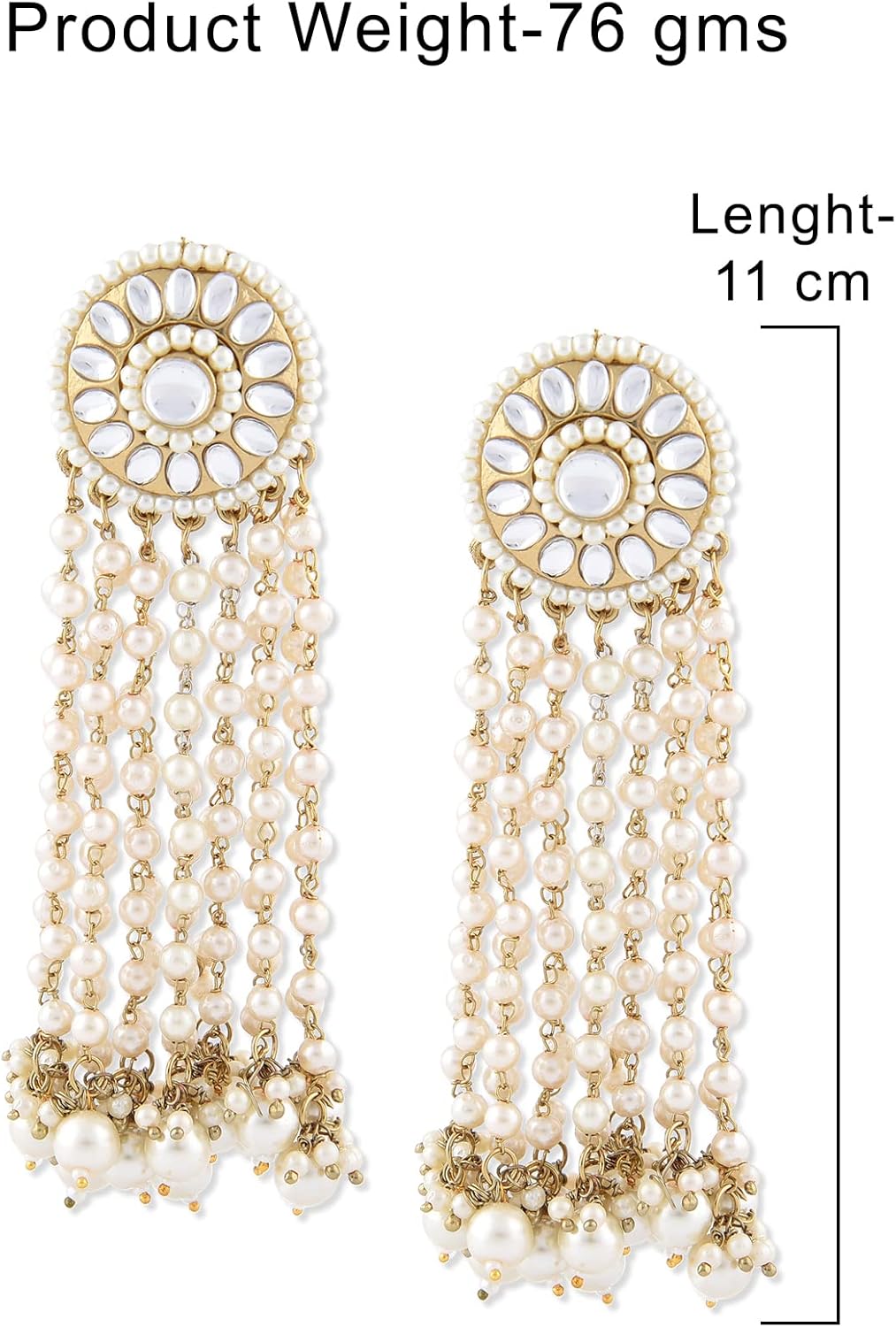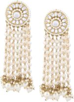 ZAVERI PEARLS Antique Gold Tone Kundan & Pearls Chain Fringe Dangle Earring For Women-ZPFK10136