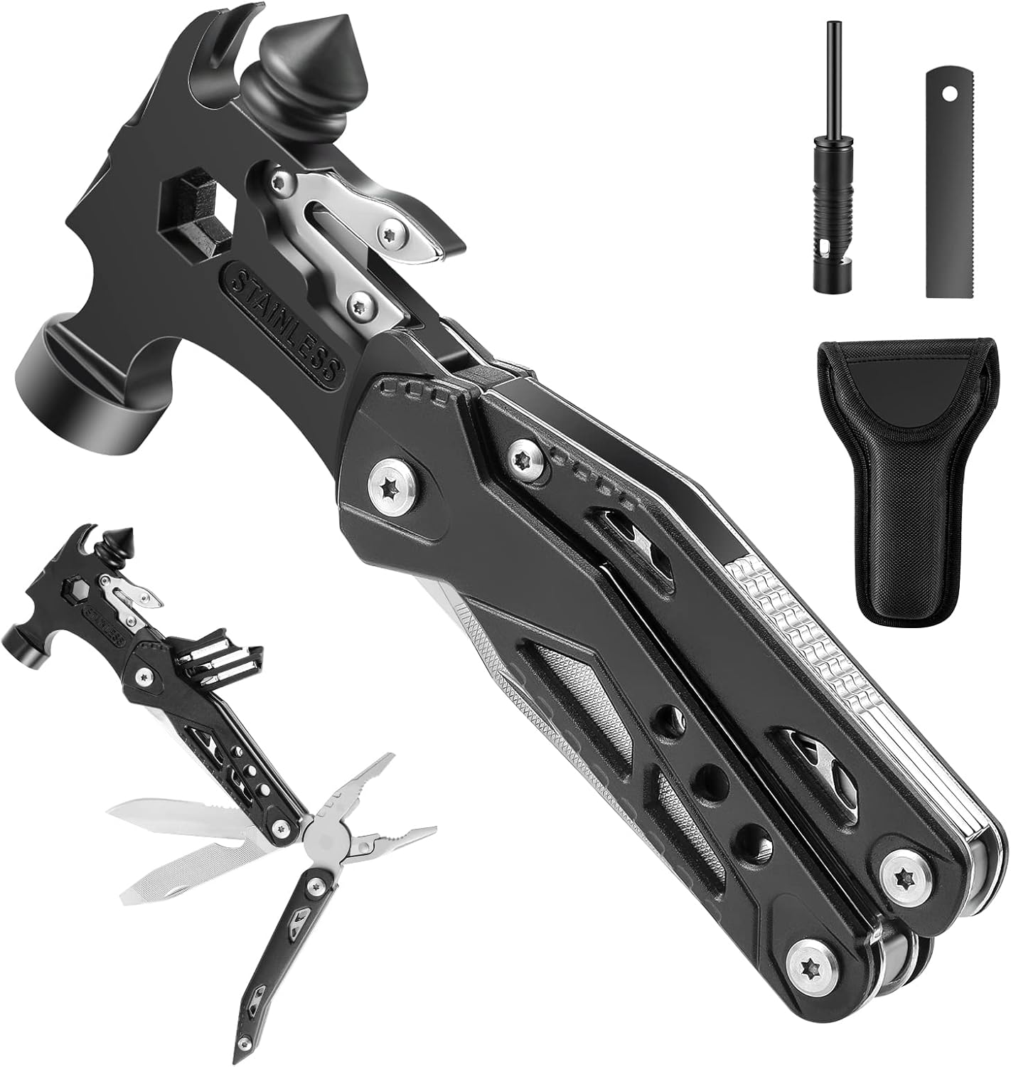 Ultimate 16-in-1 Multitool Hammer | 19 Tools Camping Accessories | Portable Survival Gear with Fire Starter | Durable Sheath | Perfect Anniversary, Birthday, and Christmas Gifts for Outdoor Enthusiasts | Ideal for Men, Boys, and Dads | Cool Gadgets for Hiking and Outdoor Adventures