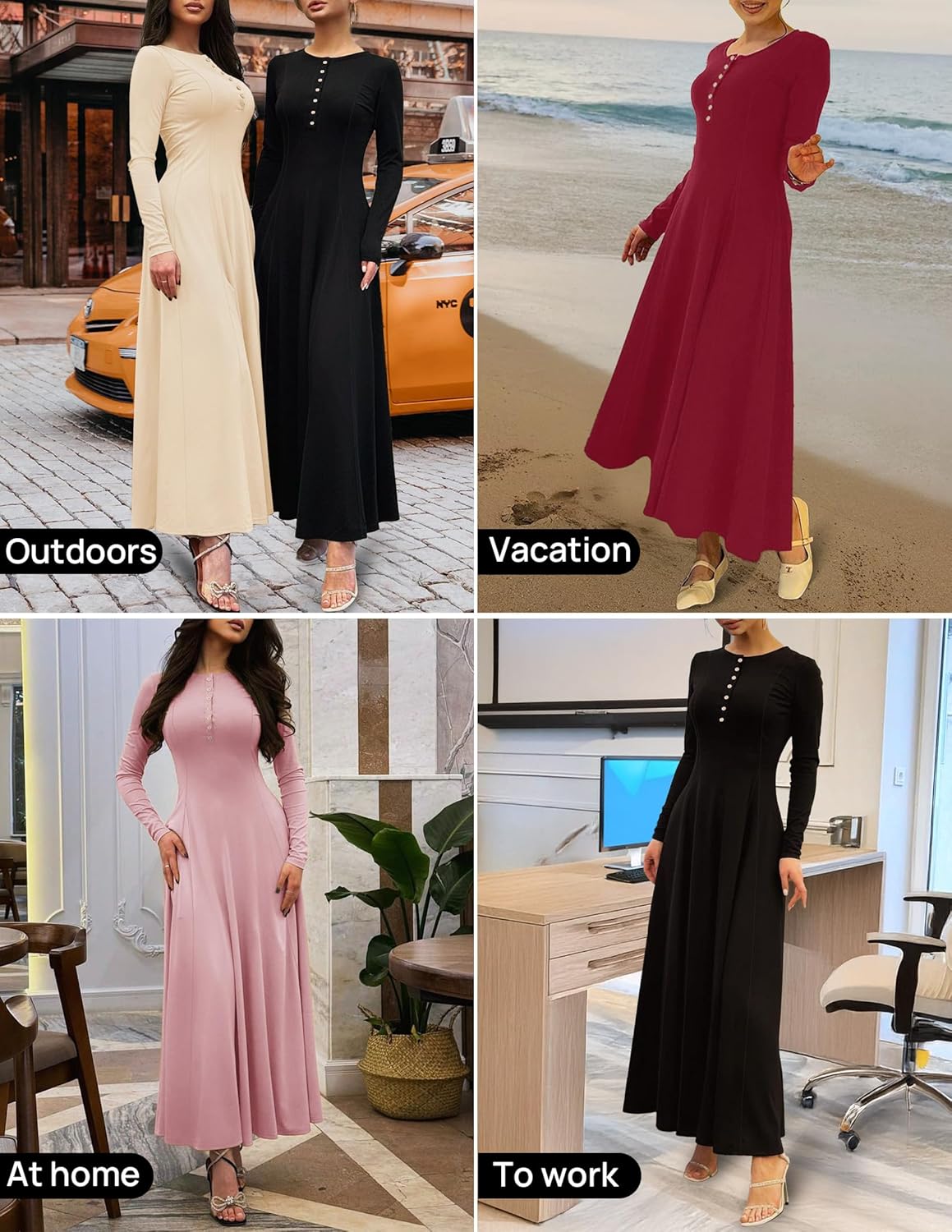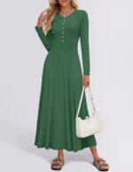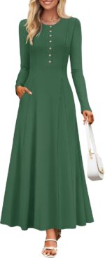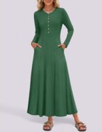 The ZESICA Women’s 2024 Fall Maxi Dress fuses casual elegance with bohemian flair. Its V-neck A-line knit design flatters all figures, flowing gracefully from waist to hem. Long sleeves and cozy fabric offer warmth and a relaxed boho feel, ideal for autumn. The dress’s soft flow and practical buttons enhance style and versatility, making it a wardrobe staple for any occasion.