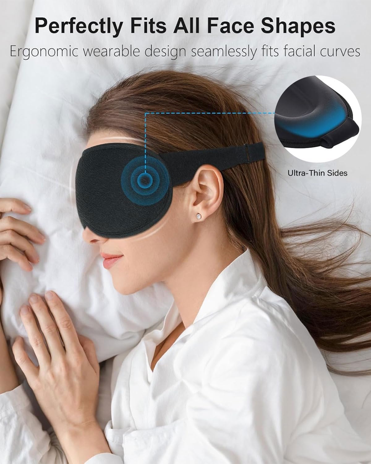 Gentle on the eyes: the unique 3D design of our mask ensures that it does not put pressure on the eyes, perfect for those who wear eyelashes. Filled with highly elastic memory foam, it is extremely soft and gentle on the skin. You will be amazed by its incredible comfort!