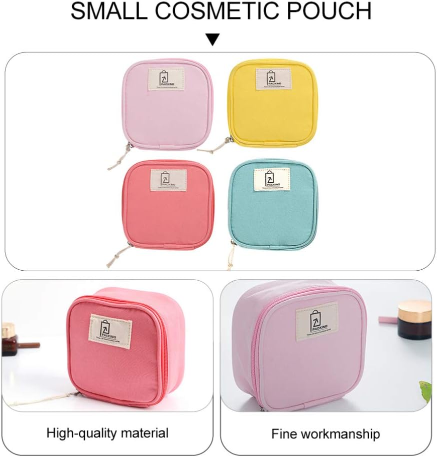 ZHUGI 4pcs Cute Small Travel Sanitary Bags Waterproof Cosmetic Jewelry Holder Lipsticks Electronics Makeup Organizers for Women Girls